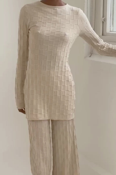 Basketweave Knit Mini Dress - Natural