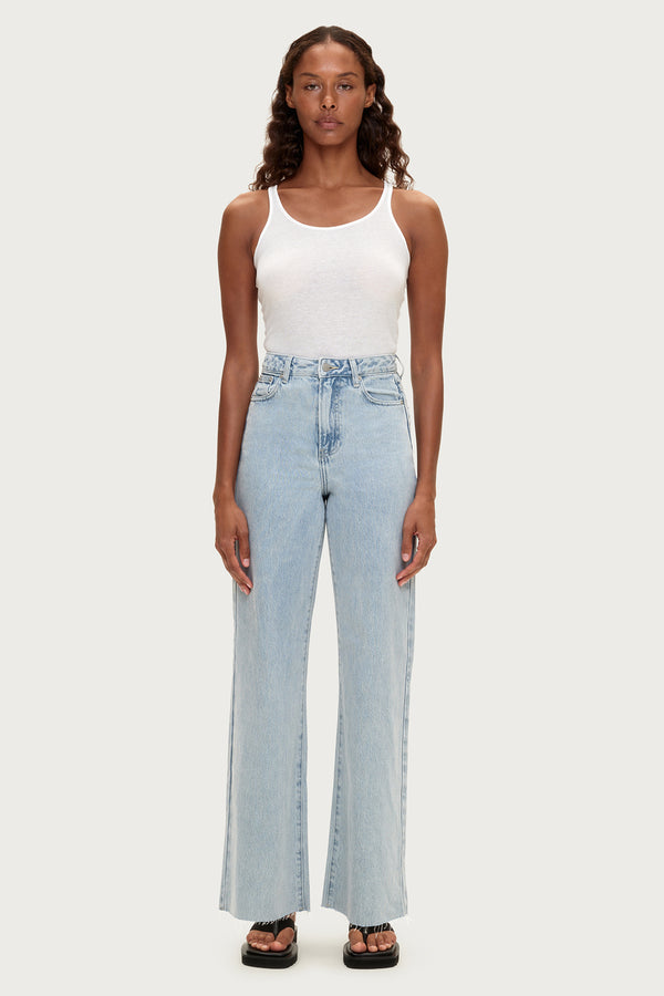 Nice versatile light shade that never dates, true to size I stuck with normal size 26. Love the raw hem too. Found these sat above the belly, a high waisted look.